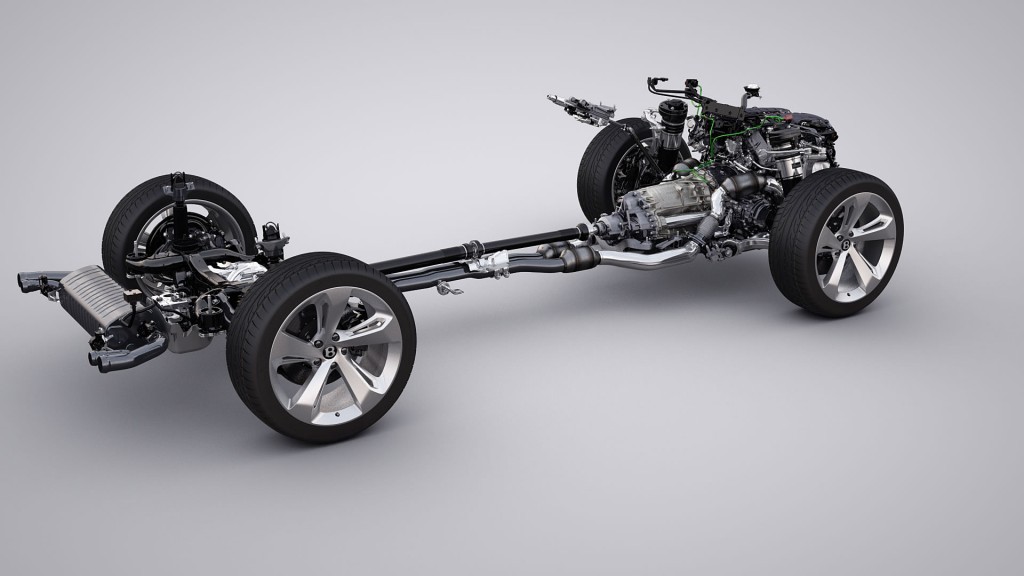 Bentley Bentayga построен на новой модульной платформе концерна VW, на которой уже базируется Audi Q7. У внедорожника Bentley иные, чем у кроссовера Audi, настройки подвески, а пневмостойки для Bentayga будут включены в стандартную комплектацию. Получит внедорожник и другие тормоза – они позже появятся на новом поколении Porsche Cayenne. Кстати, Cayenne, а также новые VW Touareg и Lamborghini Urus будет построены на укороченной версии той же фольксвагеновской платформы.