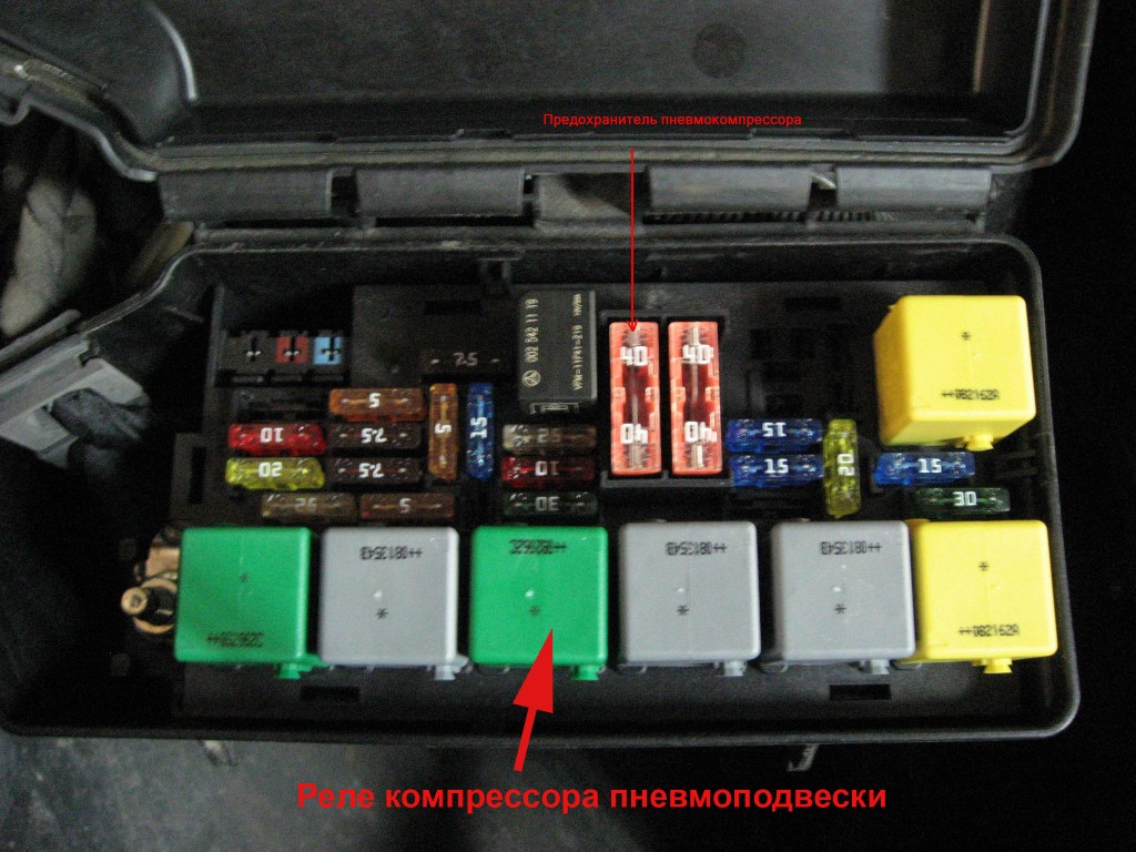 Если Ваш автомобиль приопустился на одну из сторон, значит, система пневмоподвески негерметична, перемещаться можно! Но нужно отключить компрессор, вытащив предохранитель.